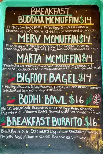 Dive into fan favorites like the Bodhi Bowl, the Ole Man Breakfast, the Breakfast Burrito or our legendary Bigfoot Bagel.