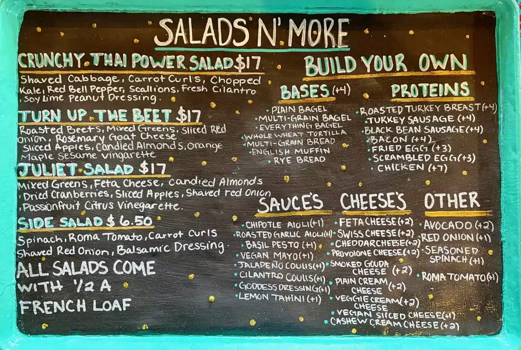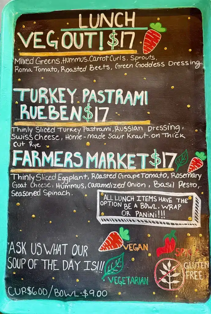 Our lunch lineup brings the same Barefoot brilliance — soups, salads, wraps, bowl and paninis, all brimming with fresh flavors. Plus we have house specialties like the Sweet Potato Reuben or Turkey Pastrami Reuben, proof that mindful eating can still be wildly delicious.